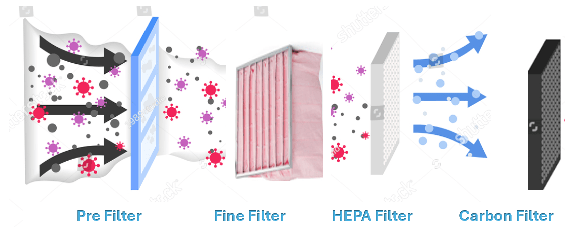 FFU – Filtar Fan Unit can also be designed and supplied to cater or compensate your where there is a pressure issue etc